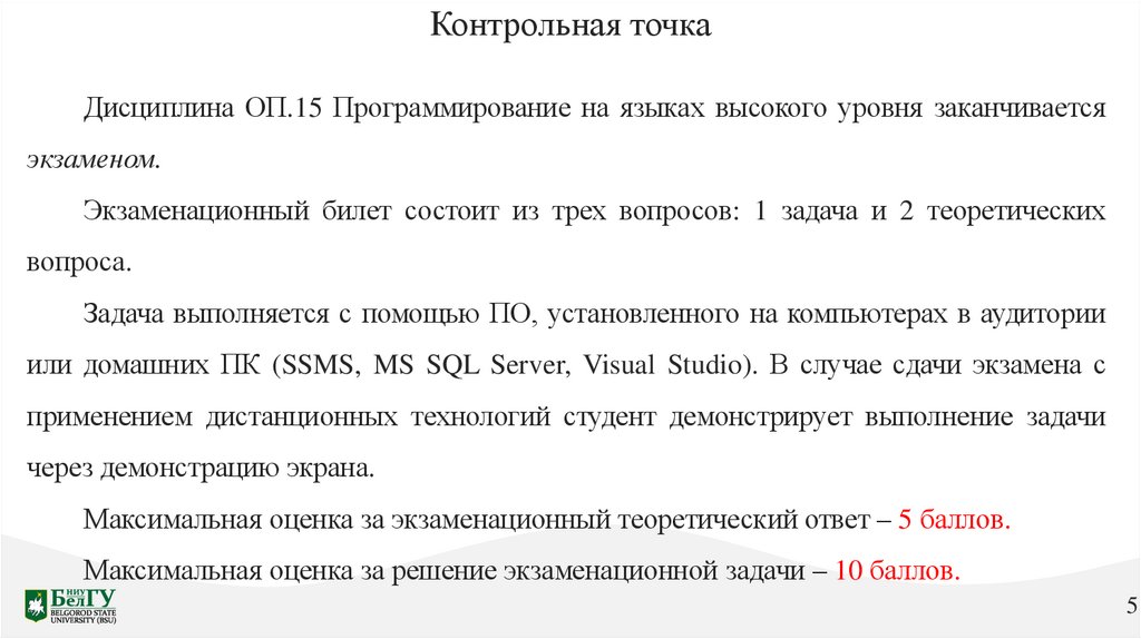 Контрольная точкаДисциплина ОП.15 Программирование на языках высокого уровня заканчивается