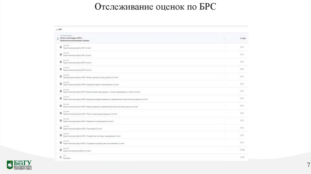 Отслеживание оценок по БРС7