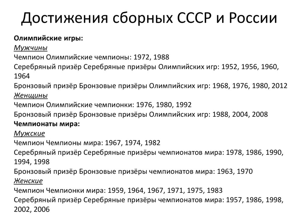 Достижения сборных СССР и РоссииОлимпийские игры: