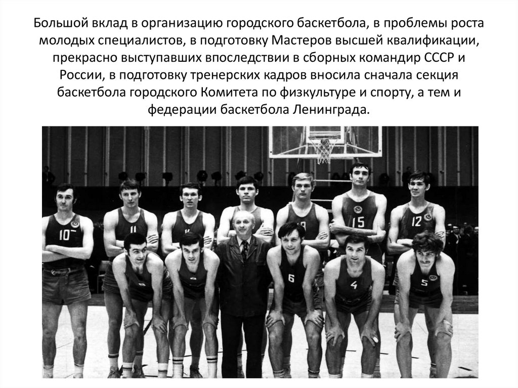 баскетбола городского Комитета по физкультуре и спорту, а тем и