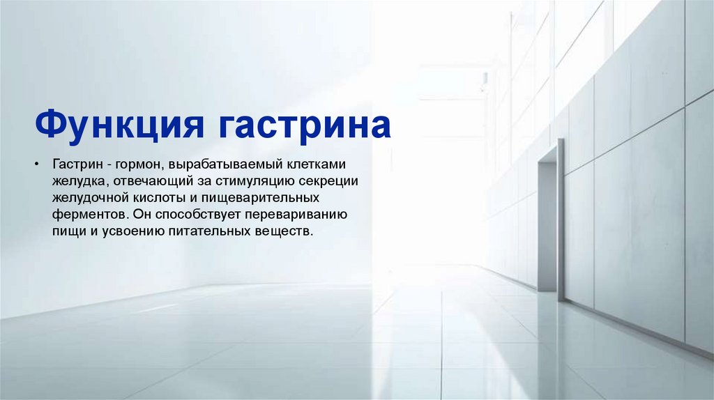 Функция гастрина• Гастрин - гормон, вырабатываемый клетками