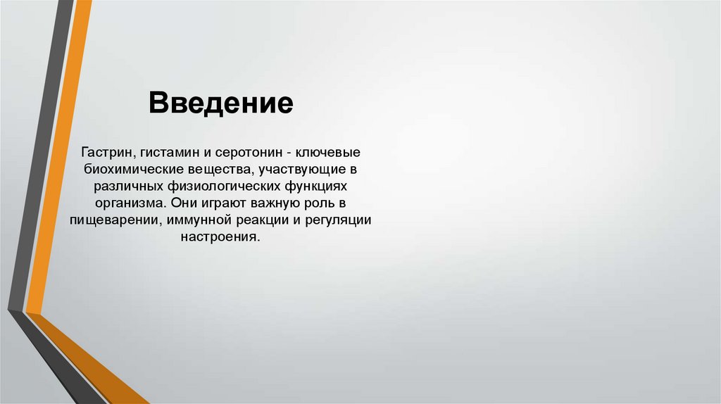 ВведениеГастрин, гистамин и серотонин - ключевые