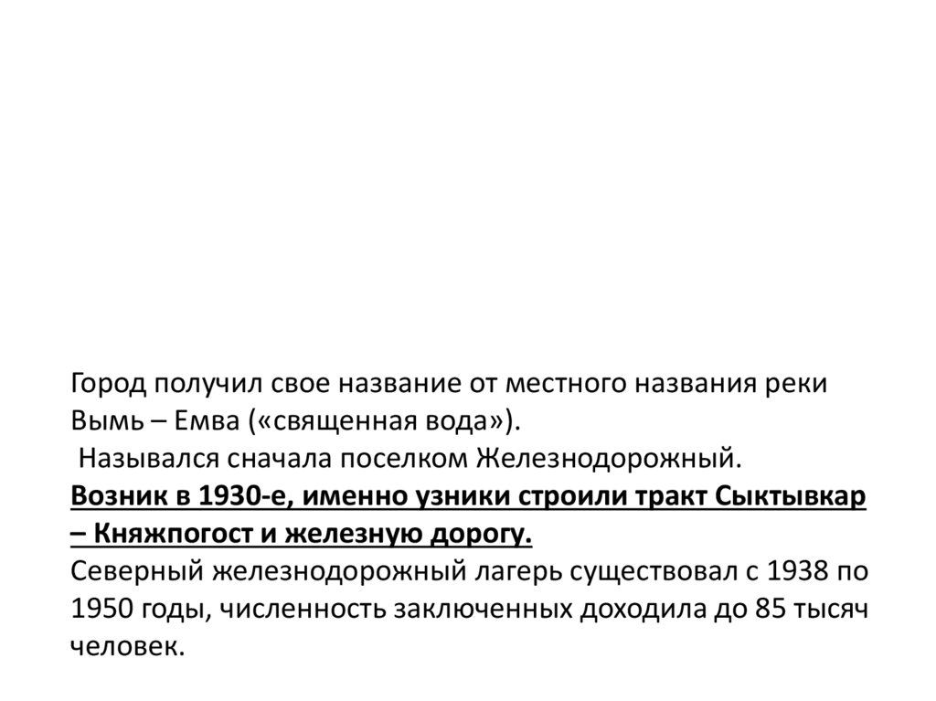 Возник в 1930-е, именно узники строили тракт Сыктывкар