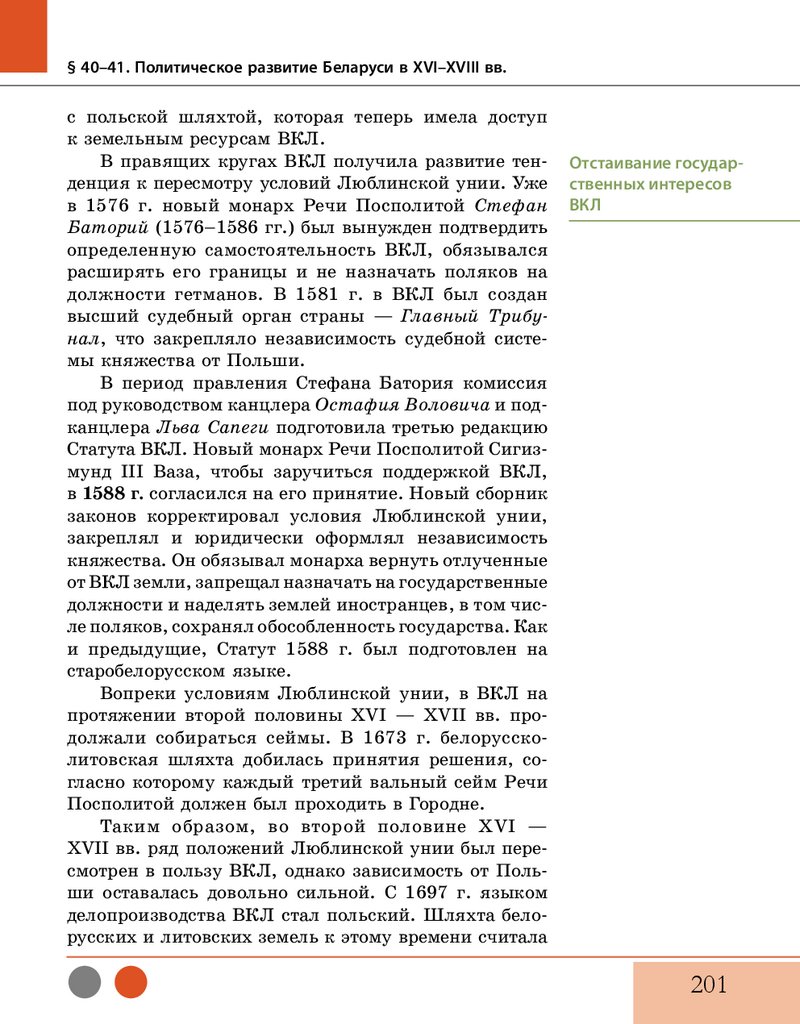 § 40–41. Политическое развитие Беларуси в XVI–XVIII вв. . . . . . . . . . . . . . . . 195