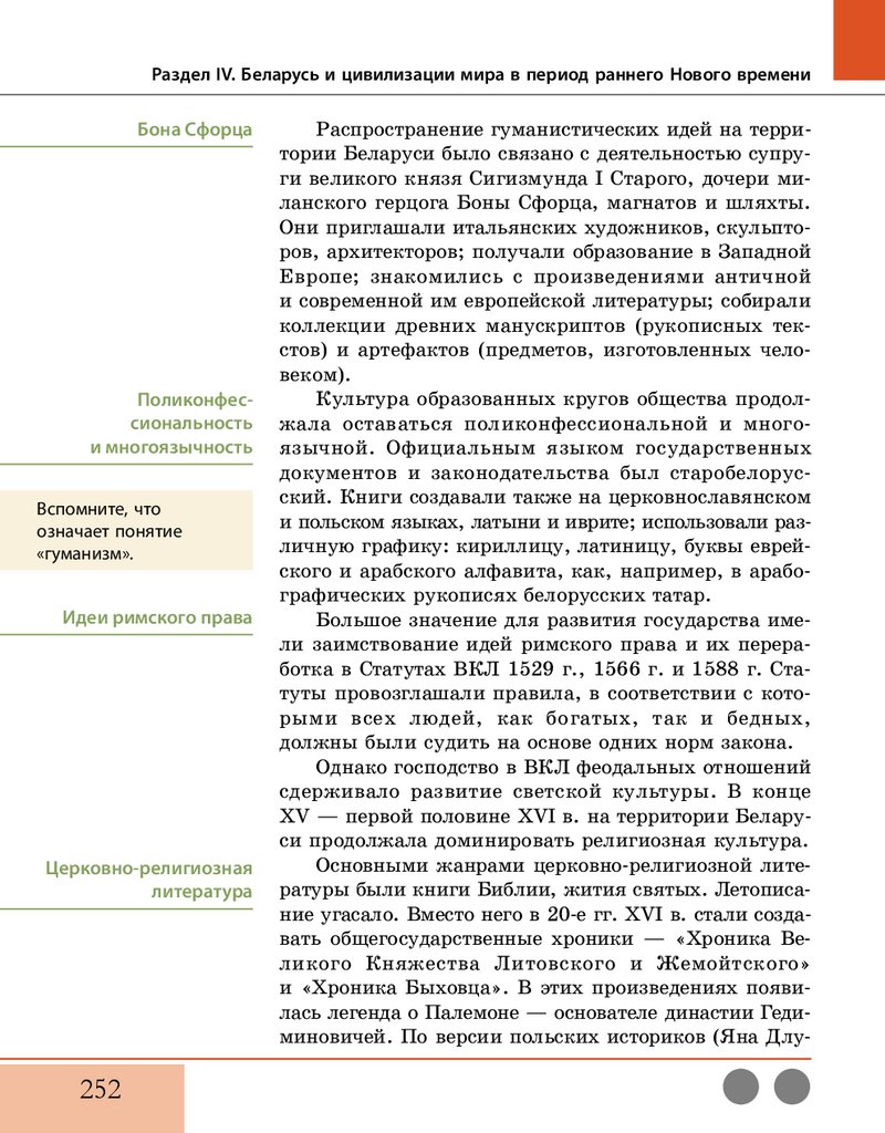 § 47. Гуманизм и Возрождение на территории Беларуси . . . . . . . . . . . . . . . . . 251