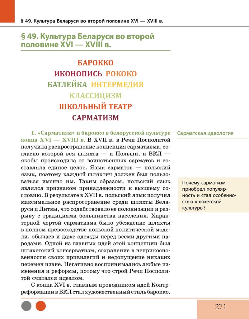 § 49. Культура Беларуси во второй половине XVI — XVIII в. . . . . . . . . . . . . . 271