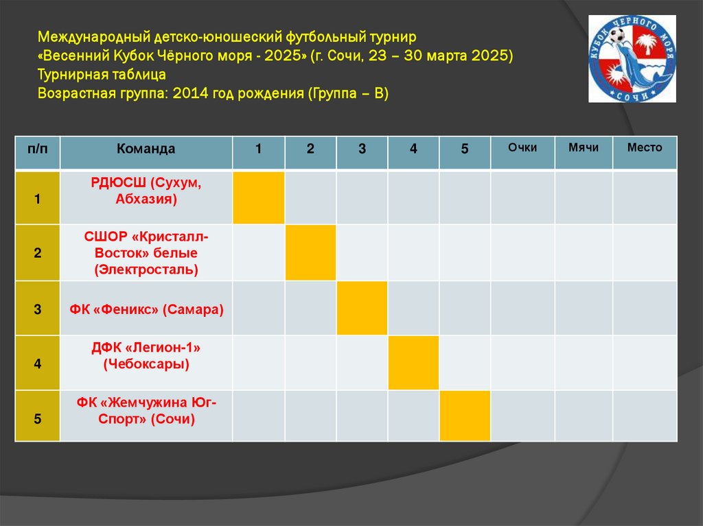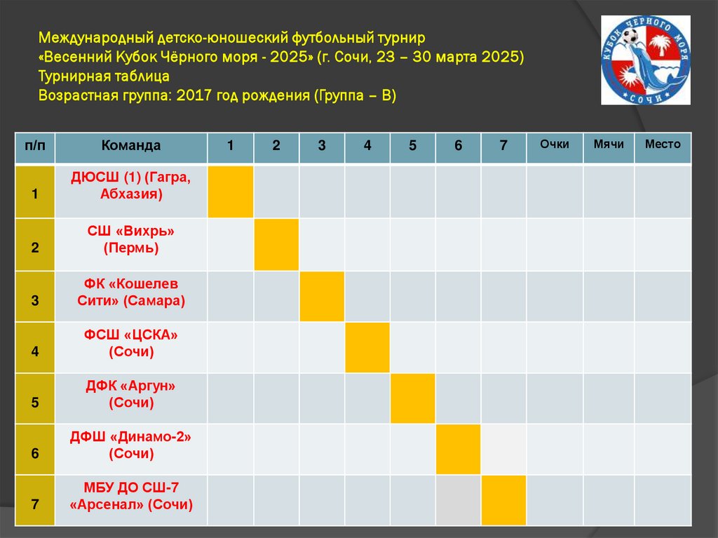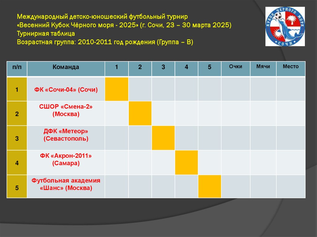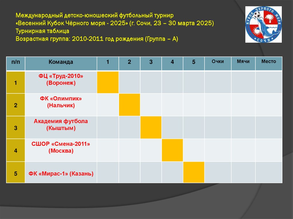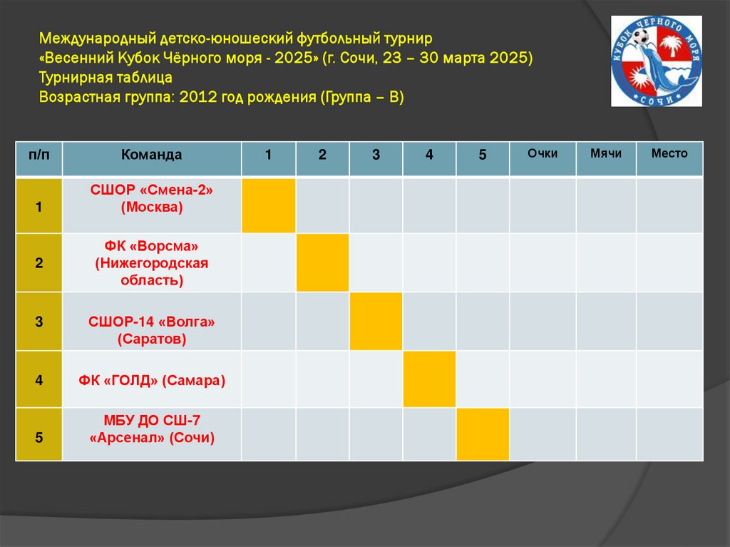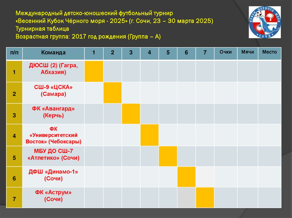Международный детско-юношеский футбольный турнир«Весенний Кубок Чёрного моря - 2025» (г. Сочи, 23 – 30 марта 2025)