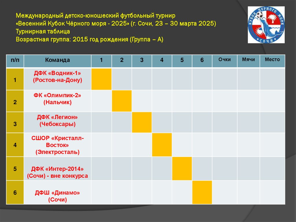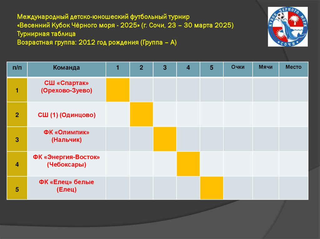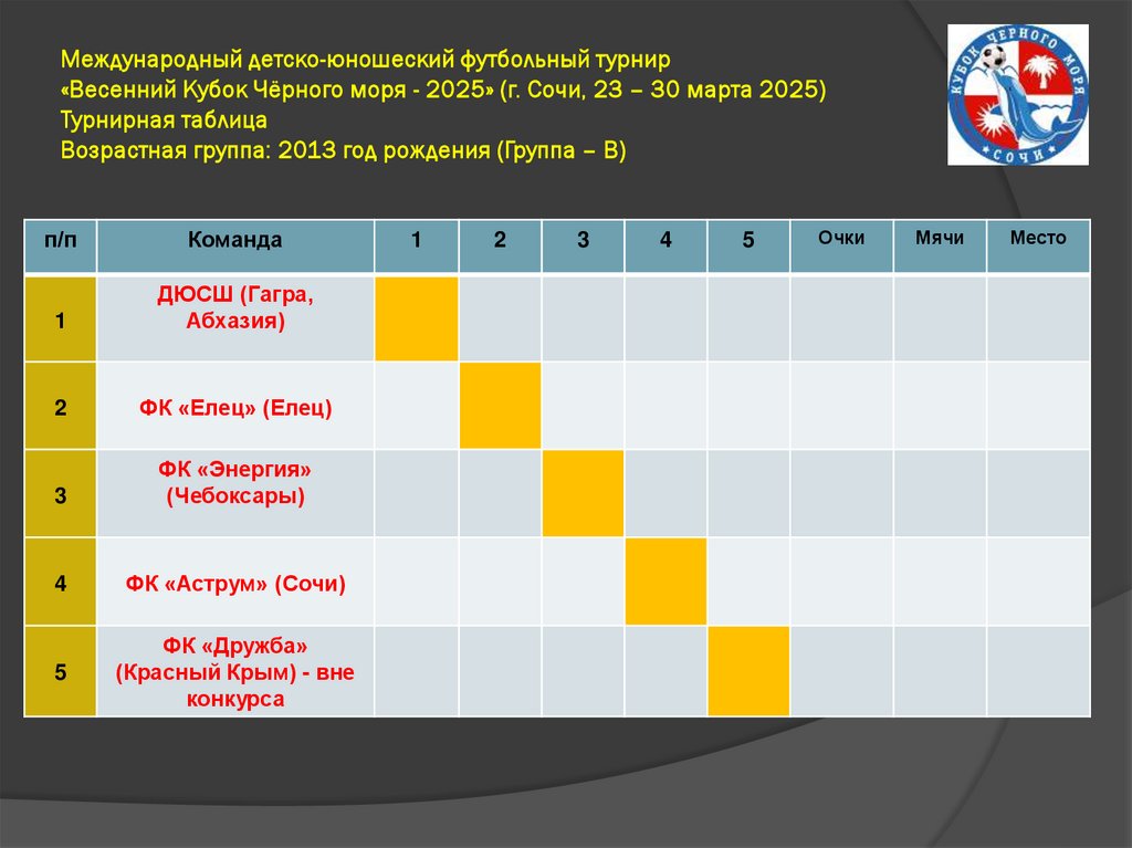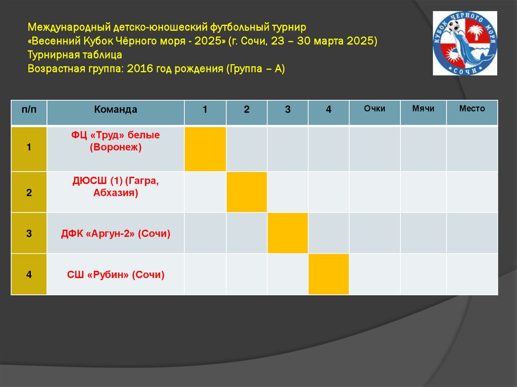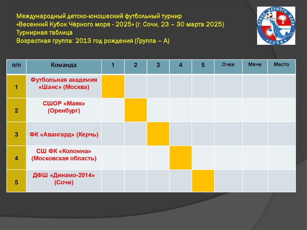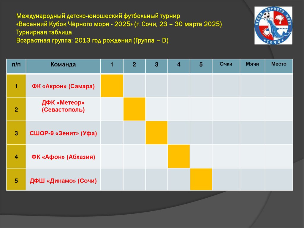 Международный детско-юношеский футбольный турнир«Весенний Кубок Чёрного моря - 2025» (г. Сочи, 23 – 30 марта 2025)