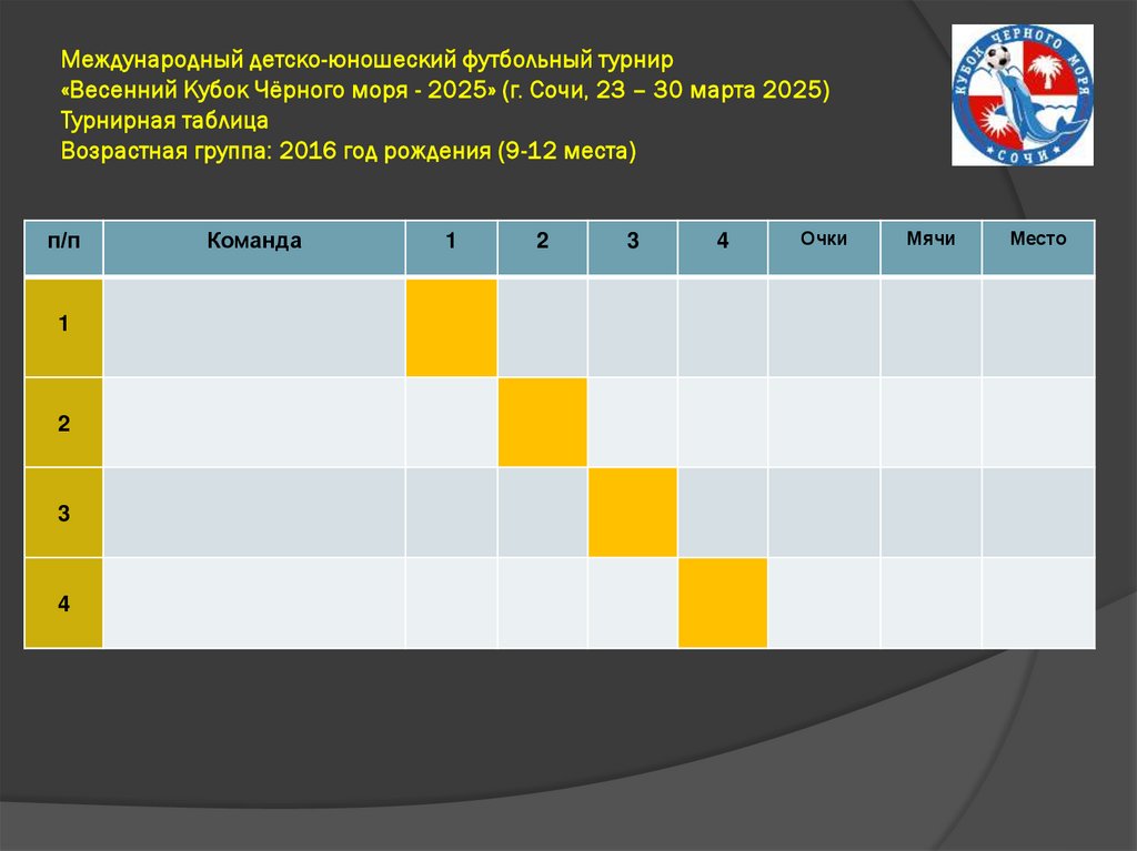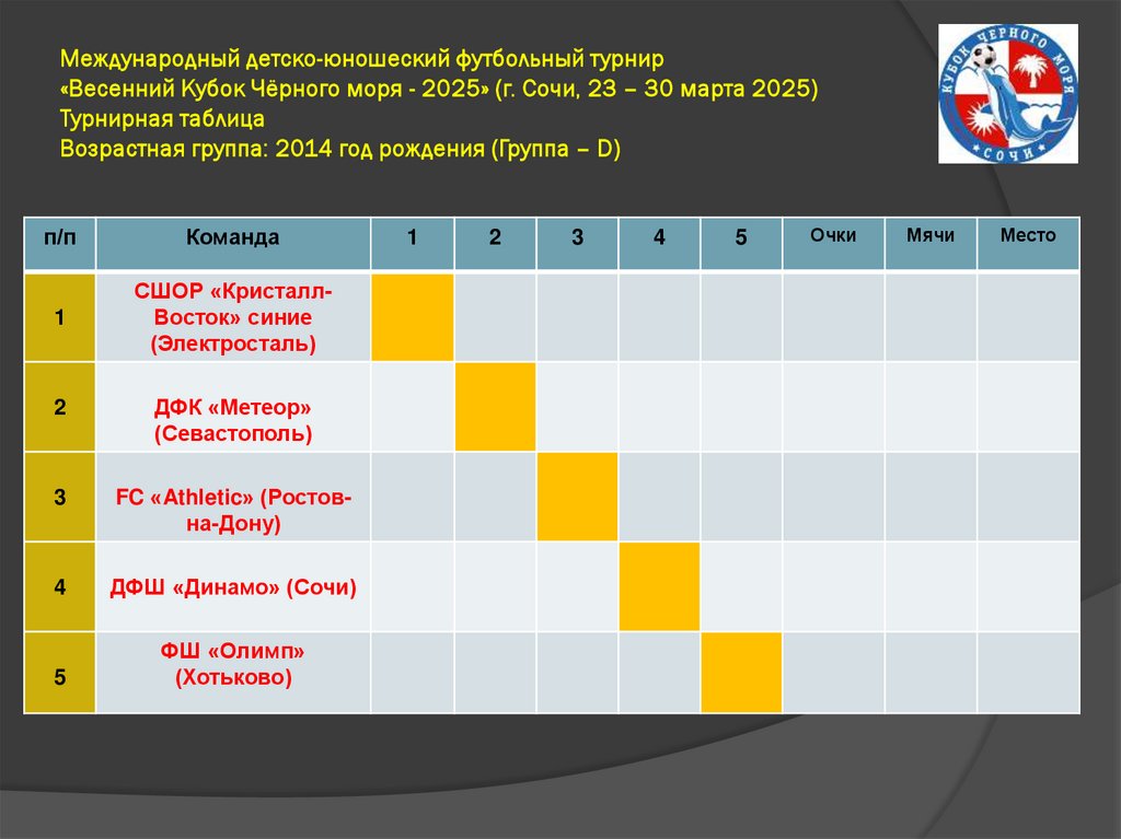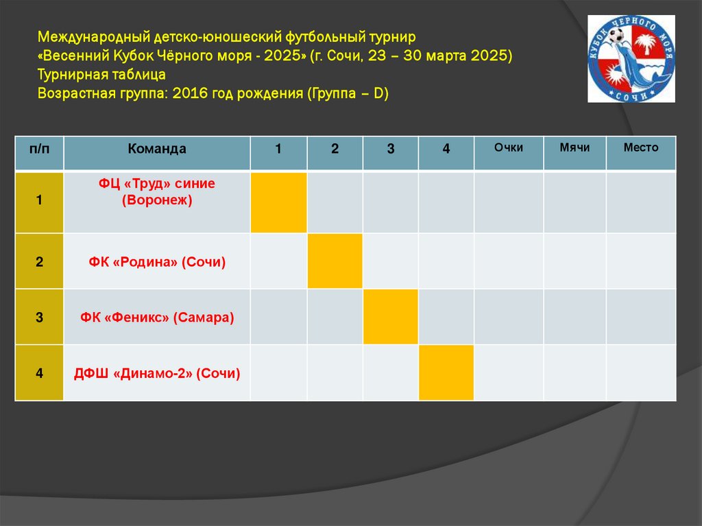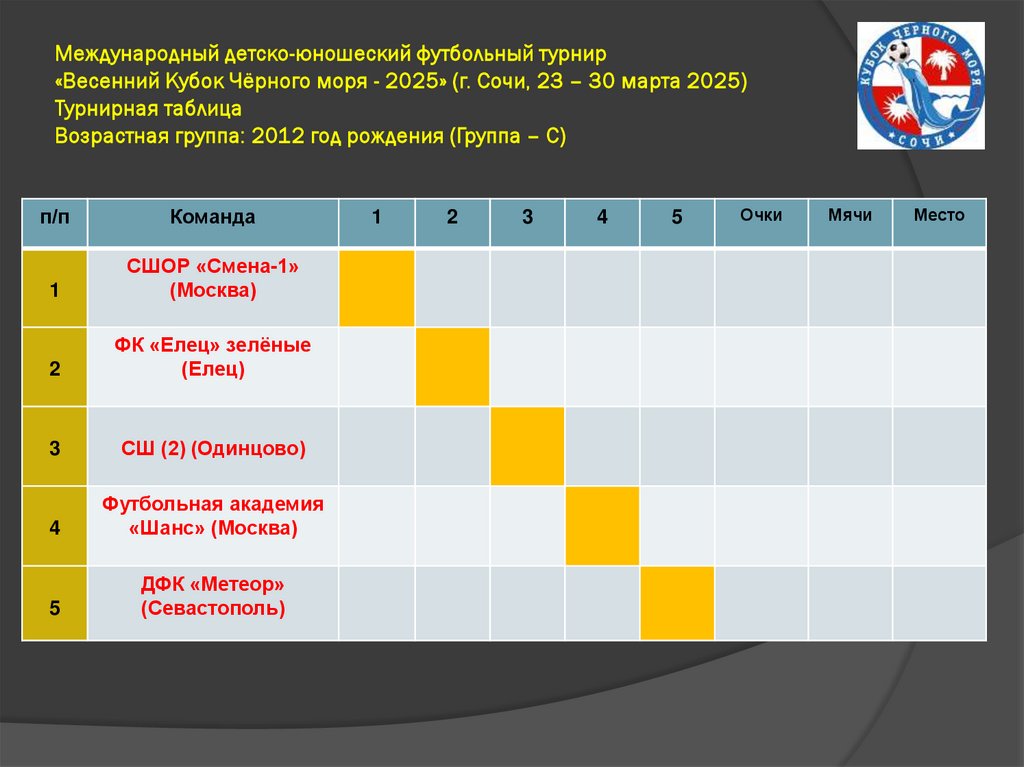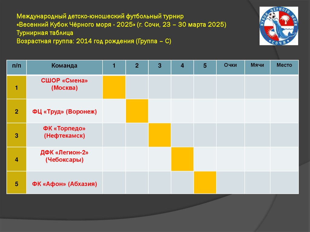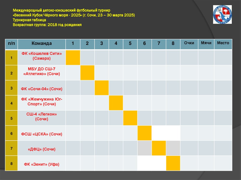 Международный детско-юношеский футбольный турнир«Весенний Кубок Чёрного моря - 2025» (г. Сочи, 23 – 30 марта 2025)