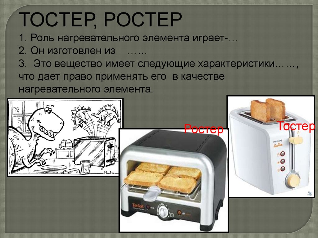 ТОСТЕР, РОСТЕР1. Роль нагревательного элемента играет-…