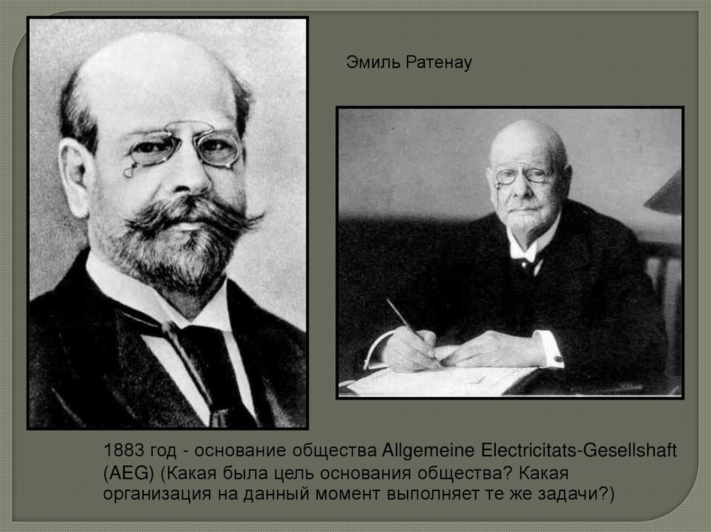 Эмиль Ратенау1883 год - основание общества Allgemeine Electricitats-Gesellshaft