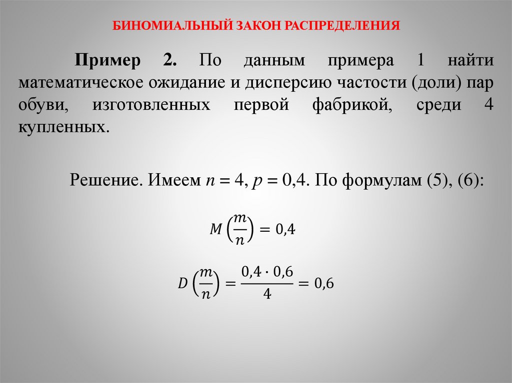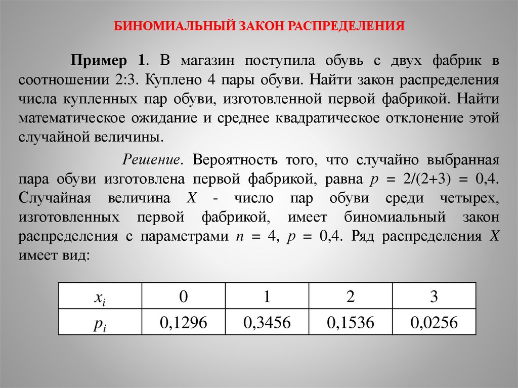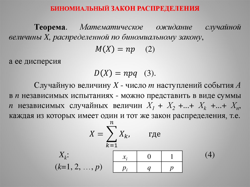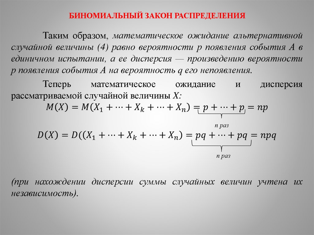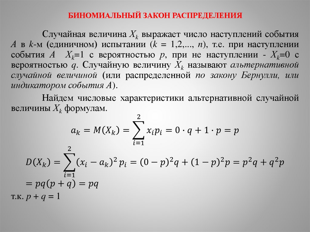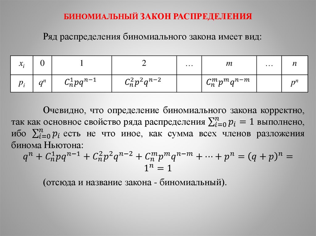 БИНОМИАЛЬНЫЙ ЗАКОН РАСПРЕДЕЛЕНИЯ