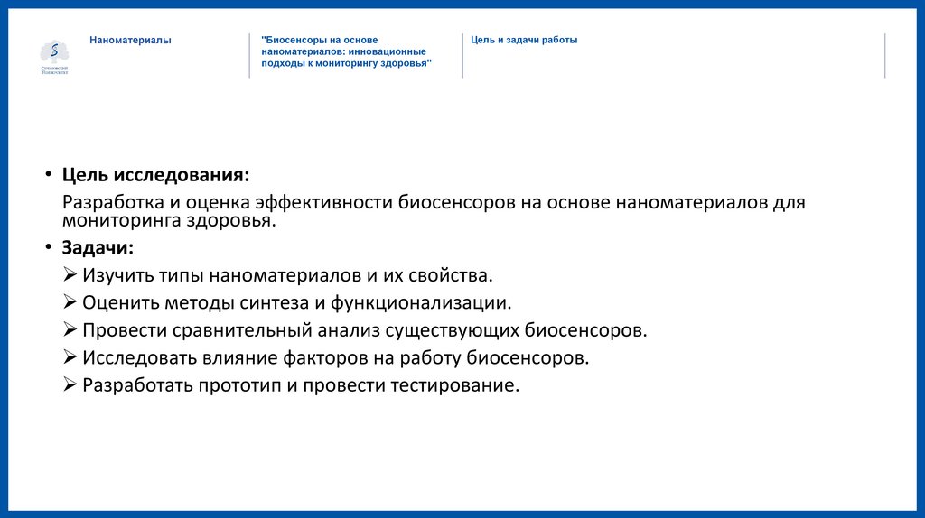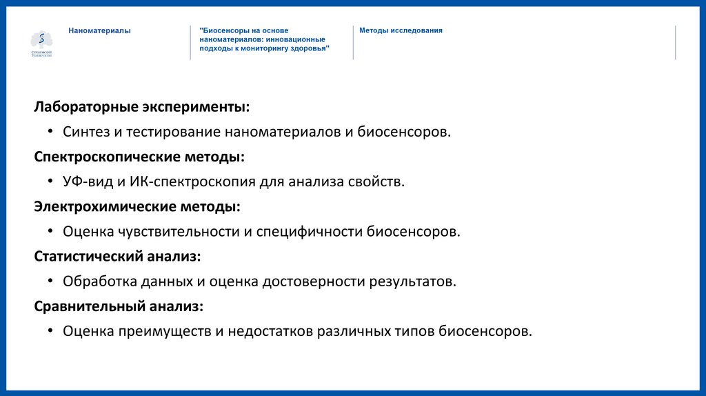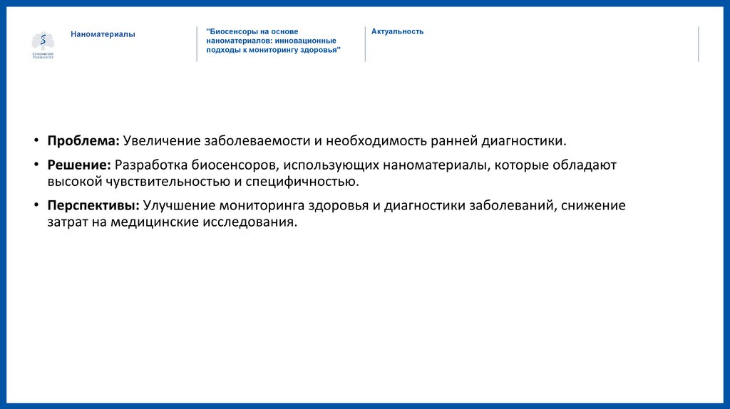 • Решение: Разработка биосенсоров, использующих наноматериалы, которые обладают