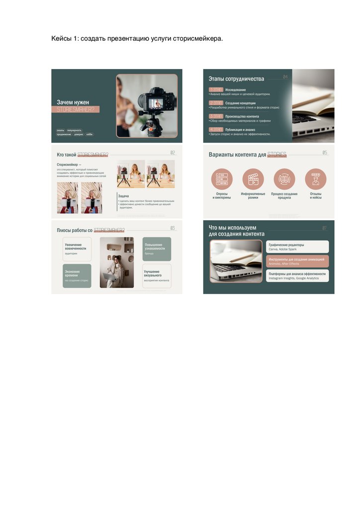 Кейсы 1: создать презентацию услуги сторисмейкера.