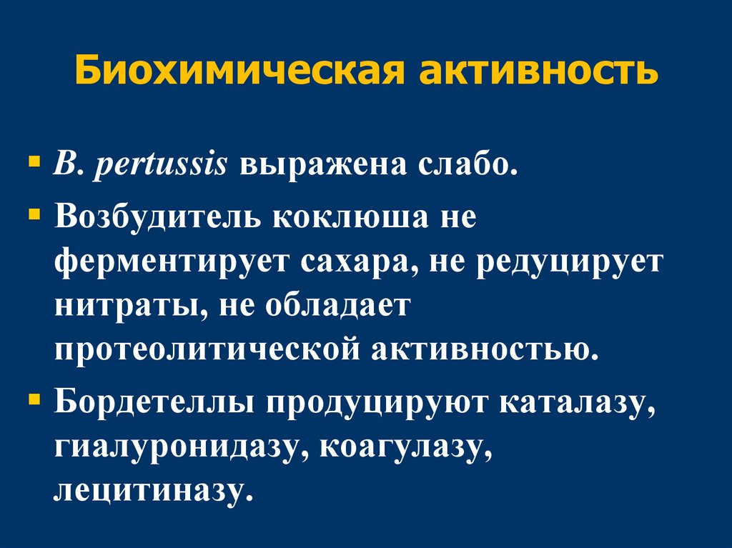B. pertussis выражена слабо.Возбудитель коклюша не