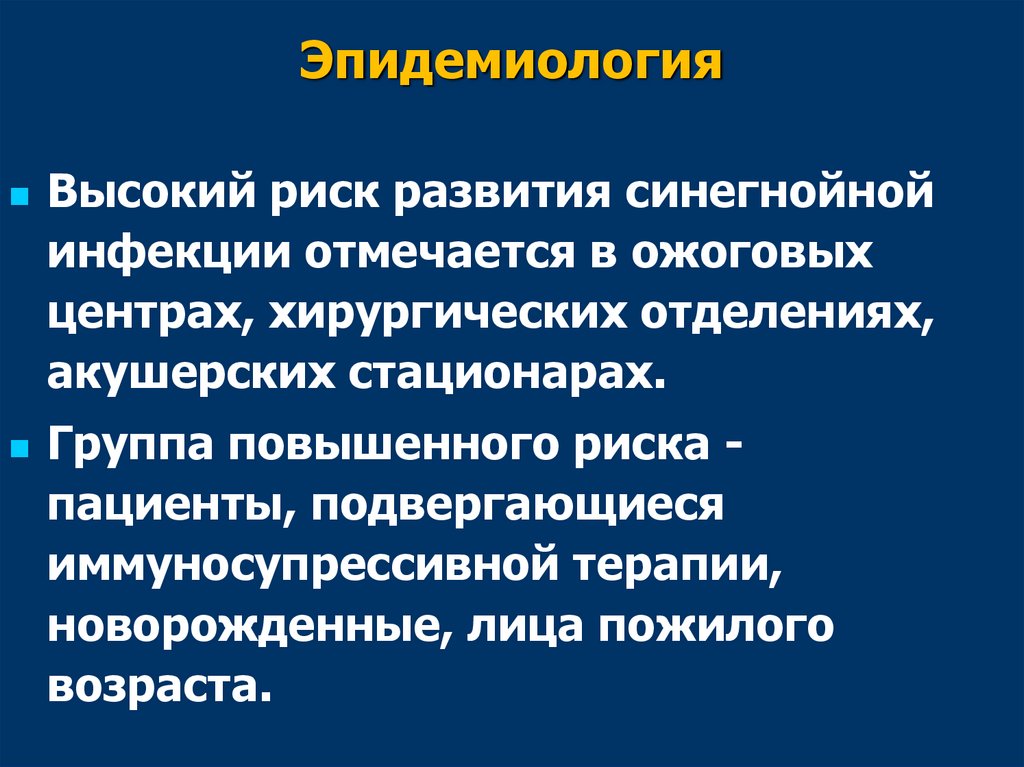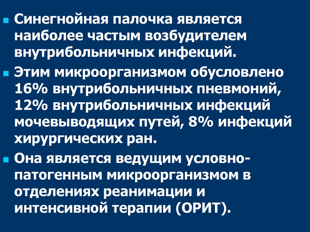 Высокий риск развития синегнойнойинфекции отмечается в ожоговых
