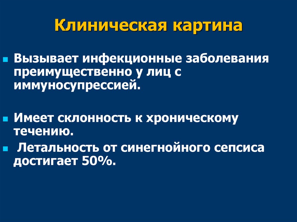Вызывает инфекционные заболеванияпреимущественно у лиц с
