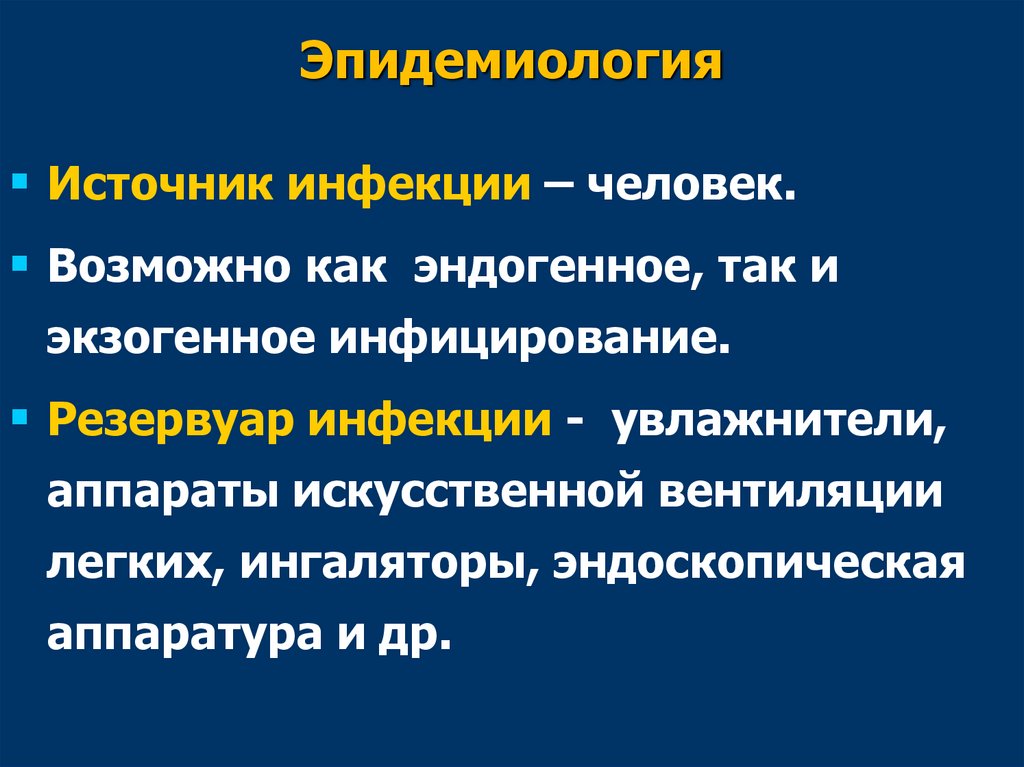 Источник инфекции – человек.Возможно как эндогенное, так и