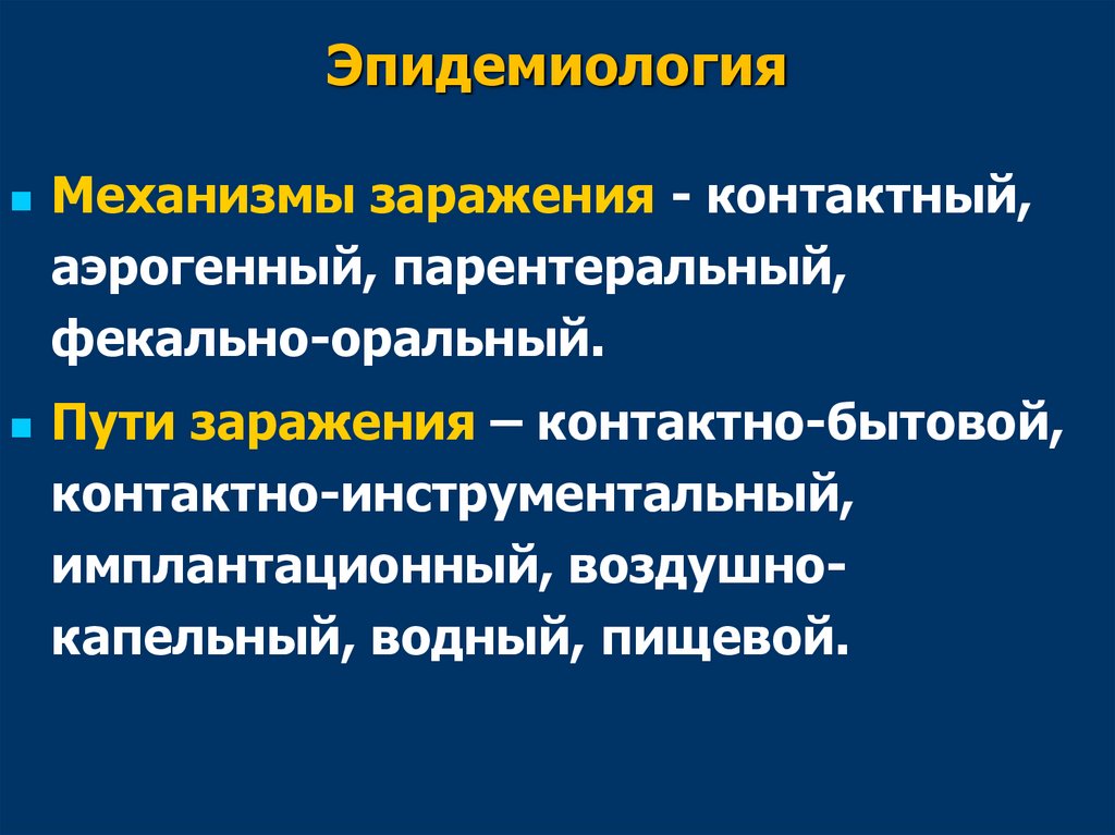 Механизмы заражения - контактный,аэрогенный, парентеральный,