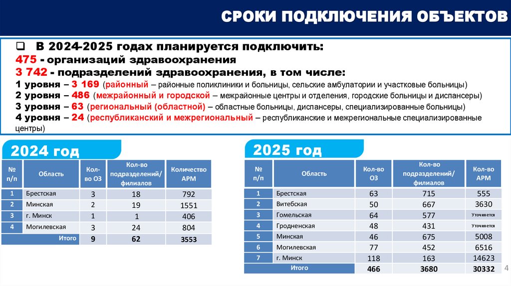 2. В 22 ОЗ 1 уровня (амбулатории, ФАПы и т.д.) техническая возможность будет реализована