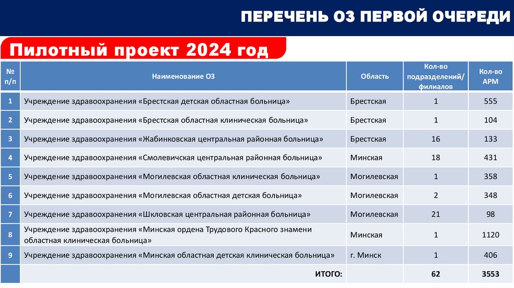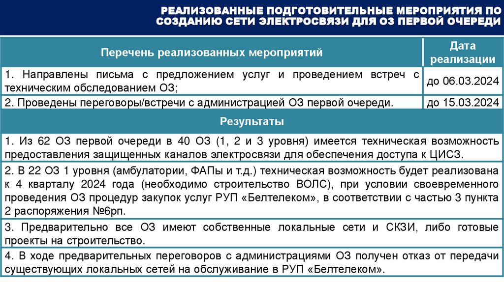 1. Из 62 ОЗ первой очереди в 40 ОЗ (1, 2 и 3 уровня) имеется техническая возможность