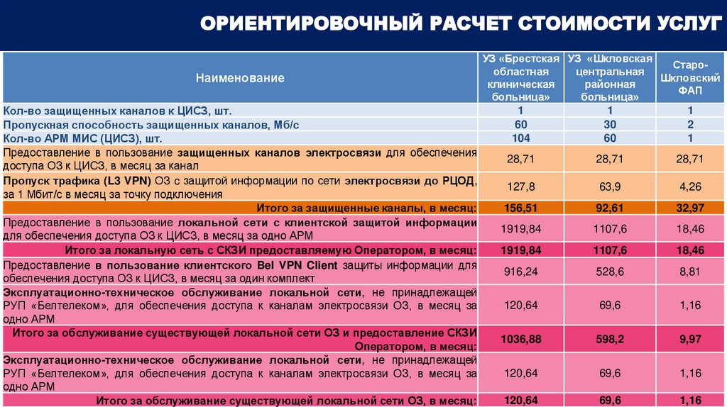 ОРИЕНТИРОВОЧНЫЙ РАСЧЕТ СТОИМОСТИ УСЛУГНаименование