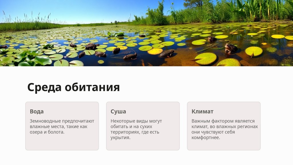 обитают как в воде, так и на суше. К ним относятся лягушки,