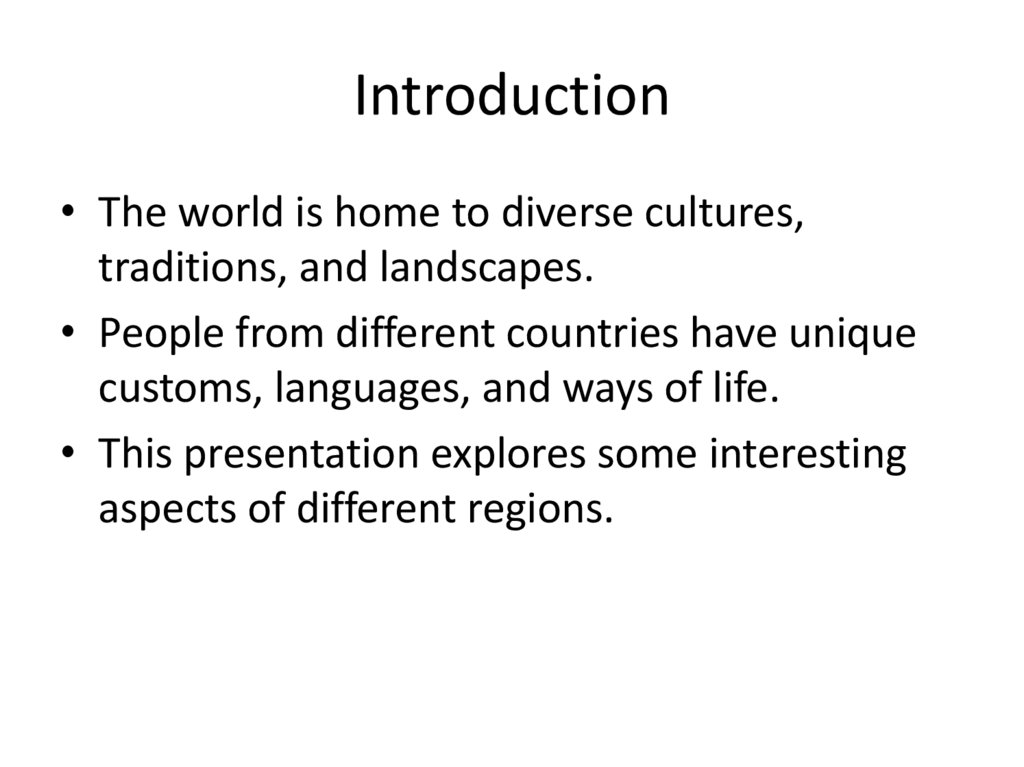 Introduction• The world is home to diverse cultures,