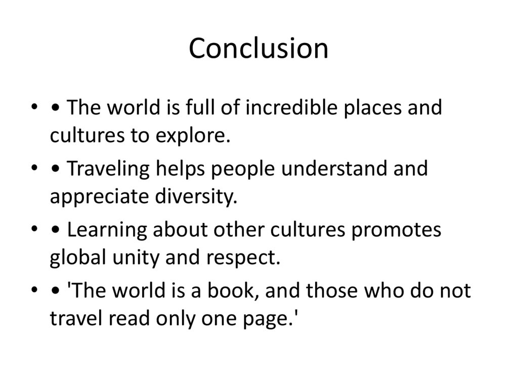 • • Traveling helps people understand and