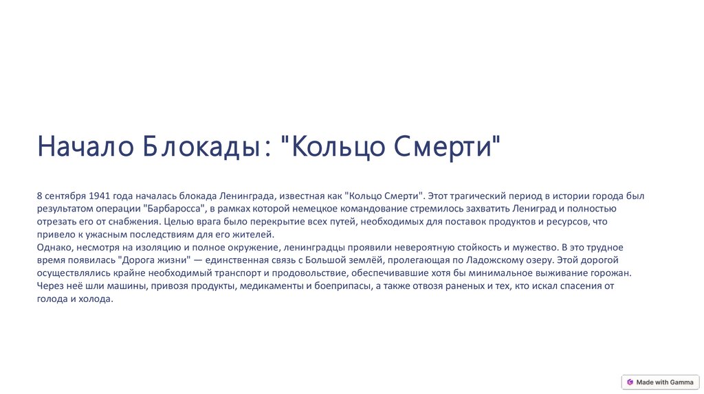 Начало Б локады : "Кольцо Смерти"8 сентября 1941 года началась блокада Ленинграда, известная как "Кольцо Смерти". Этот трагический период в истории города был
