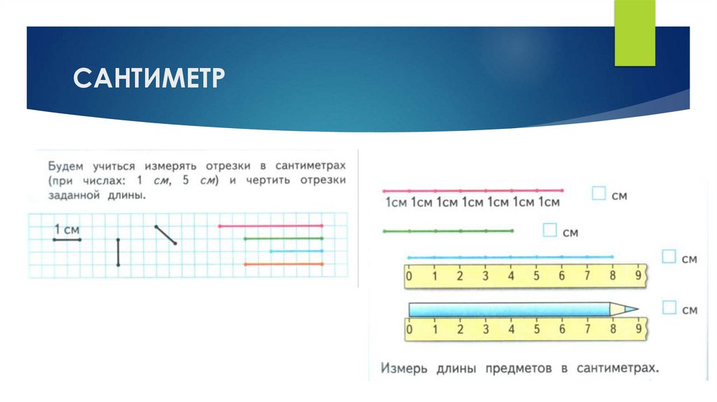 Единица длины сантиметр. Измерение отрезков в сантиметрах