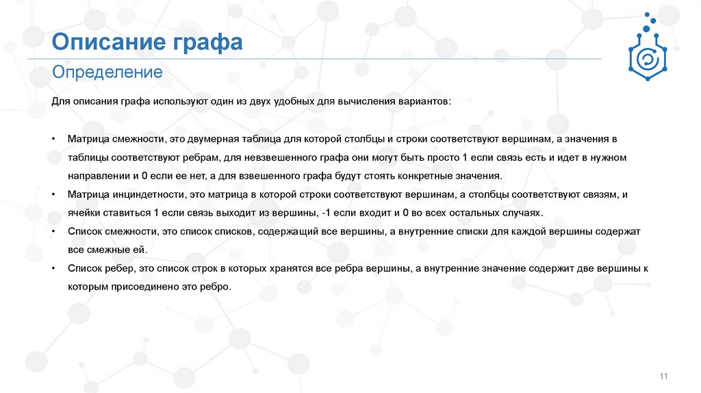 небольшого, относительно общего количества вершин. Плотным в свою очередь будет тот граф количество ребер