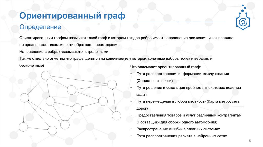 Ориентированным графом называют такой граф в котором каждое ребро имеет направление движения, и как правило