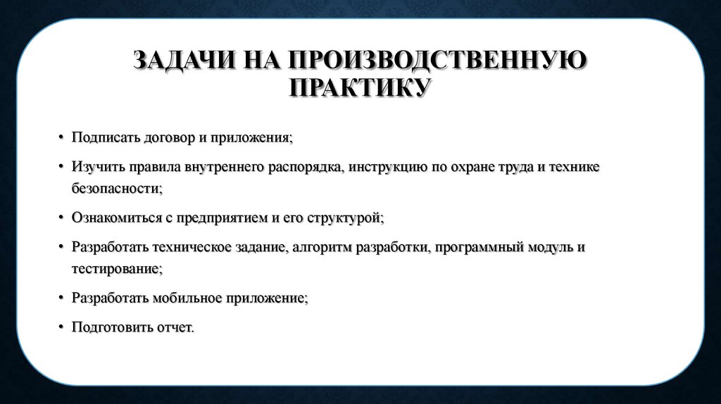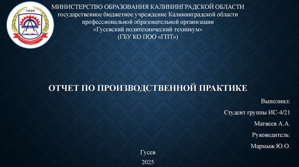 ОТЧЕТ ПО ПРОИЗВОДСТВЕННОЙ ПРАКТИКЕ