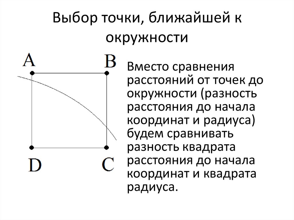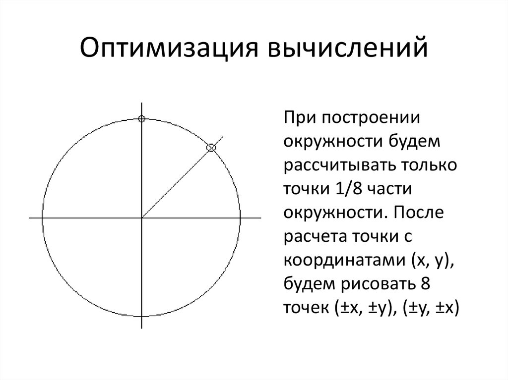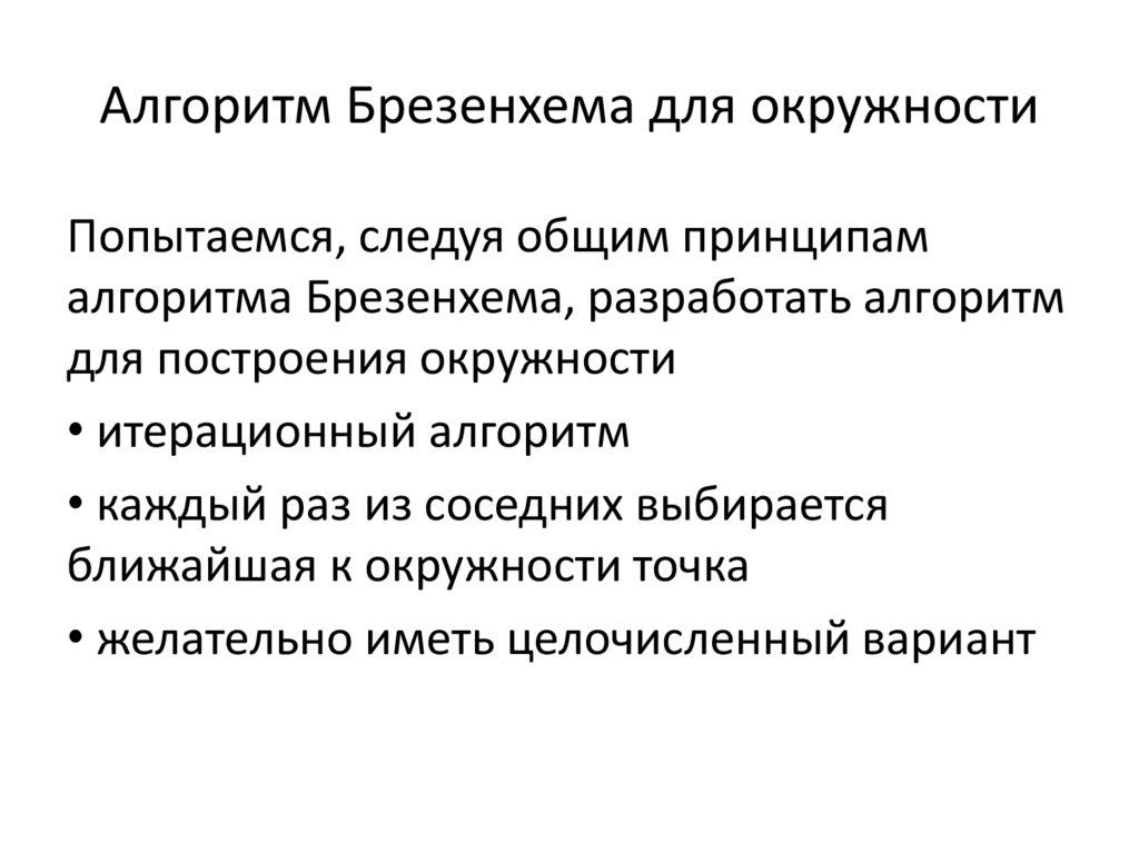 Алгоритм Брезенхема для окружностиПопытаемся, следуя общим принципам