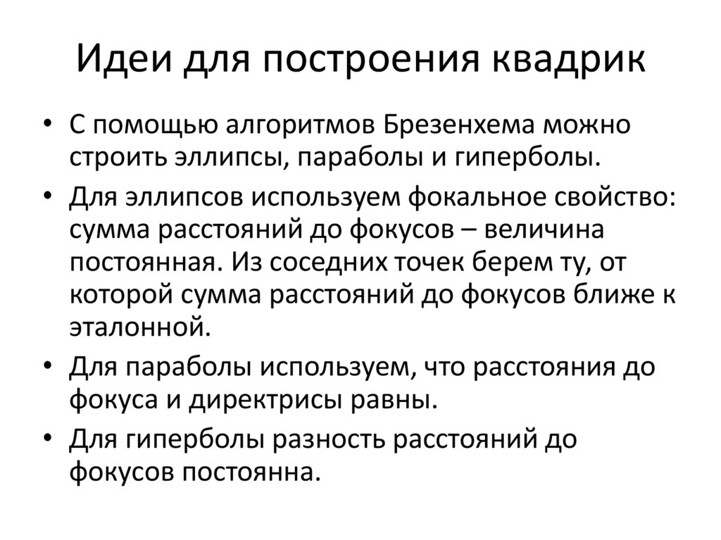 Идеи для построения квадрик• С помощью алгоритмов Брезенхема можно