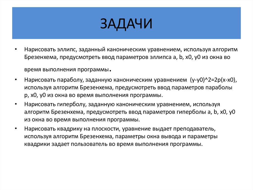 ЗАДАЧИНарисовать эллипс, заданный каноническим уравнением, используя алгоритм