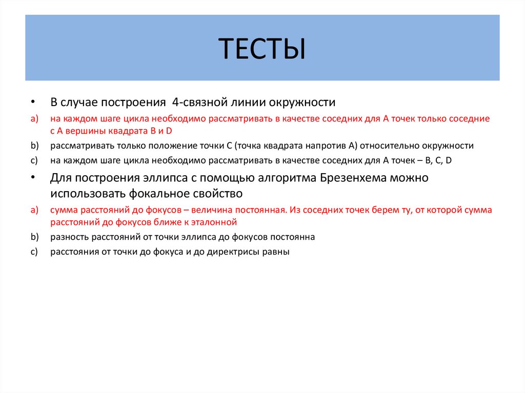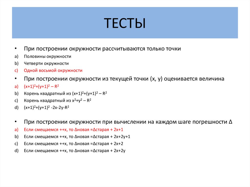 ТЕСТЫПри построении окружности рассчитываются только точки