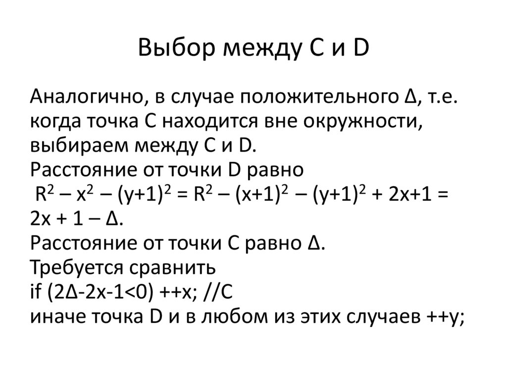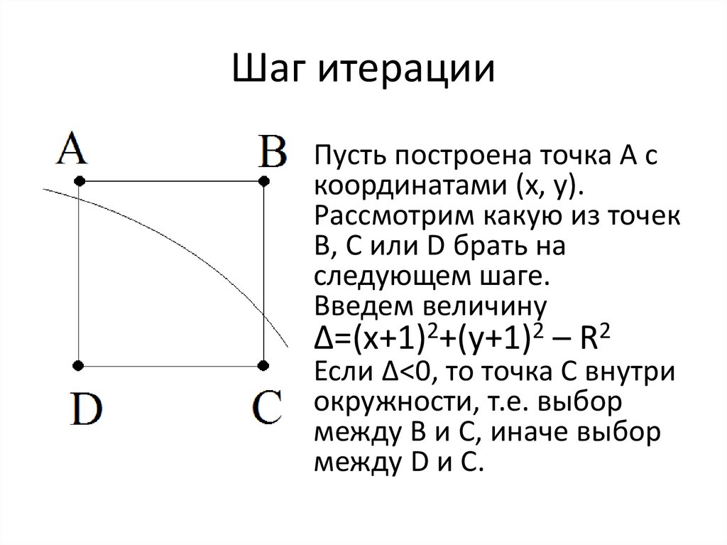 При построении окружности при вычислении на каждом шаге погрешности Δ