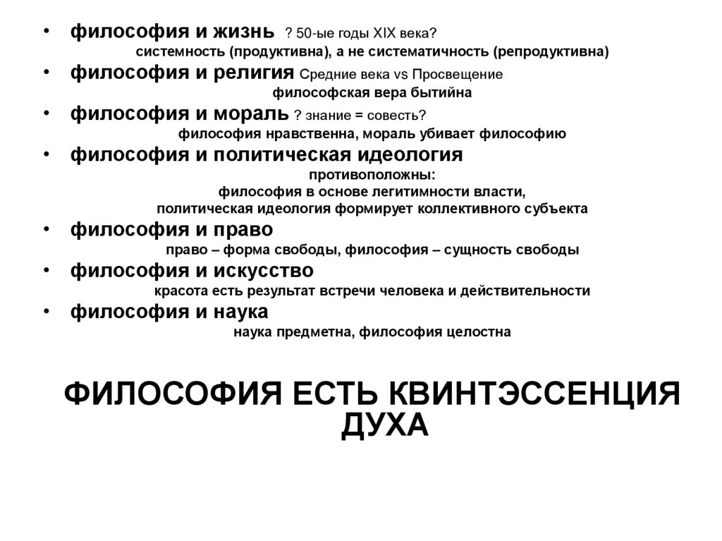 • философия и жизнь ? 50-ые годы XIX века?системность (продуктивна), а не систематичность (репродуктивна)