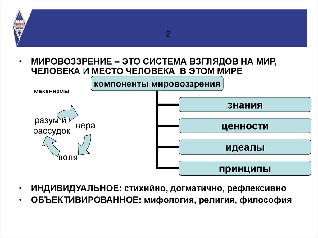 2• МИРОВОЗЗРЕНИЕ – ЭТО СИСТЕМА ВЗГЛЯДОВ НА МИР,