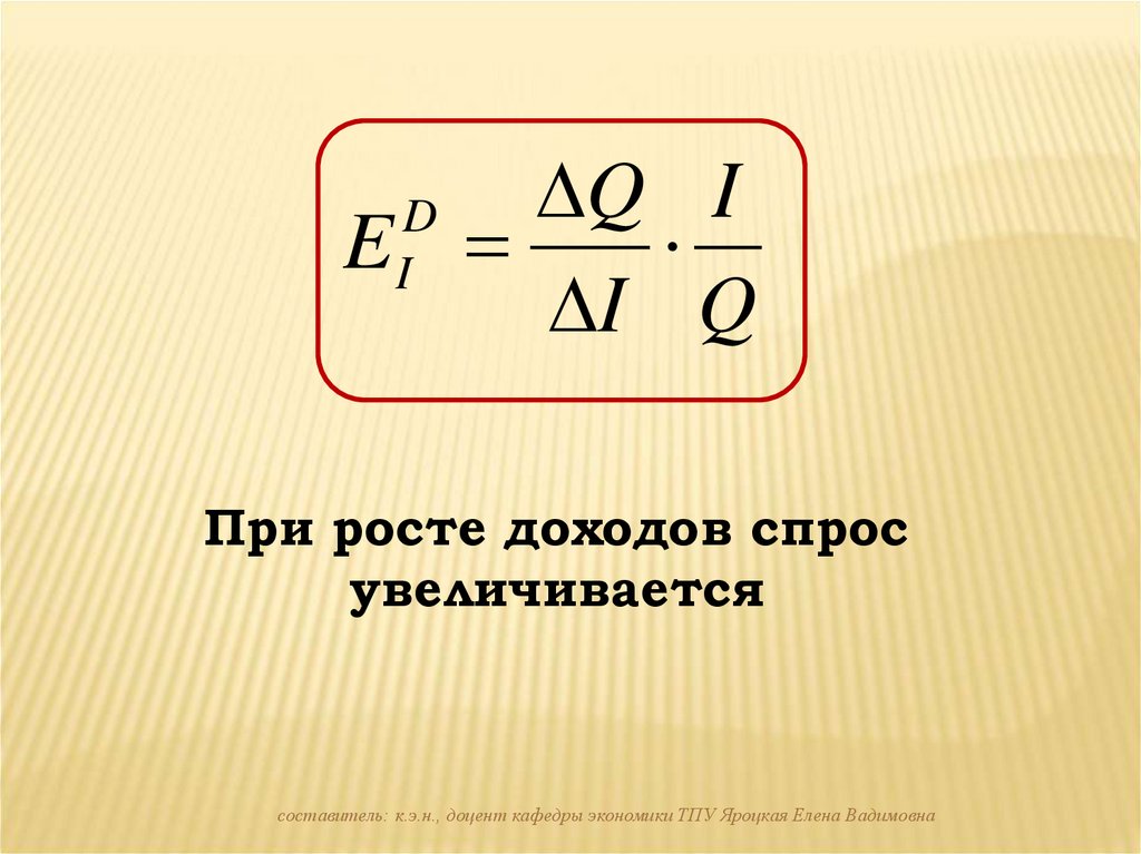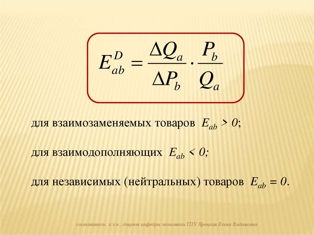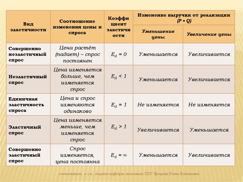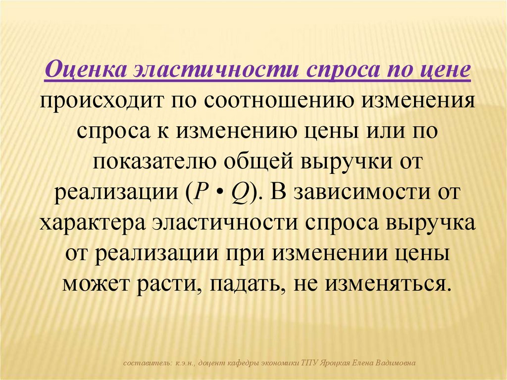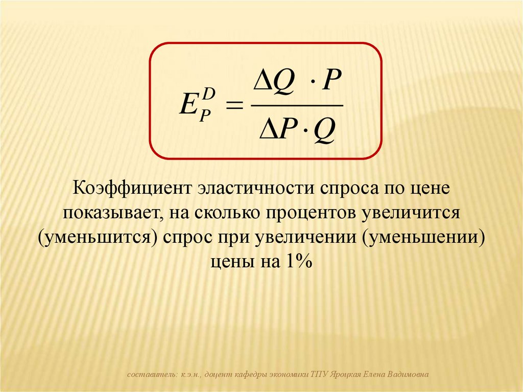 Оценка эластичности спроса по ценепроисходит по соотношению изменения