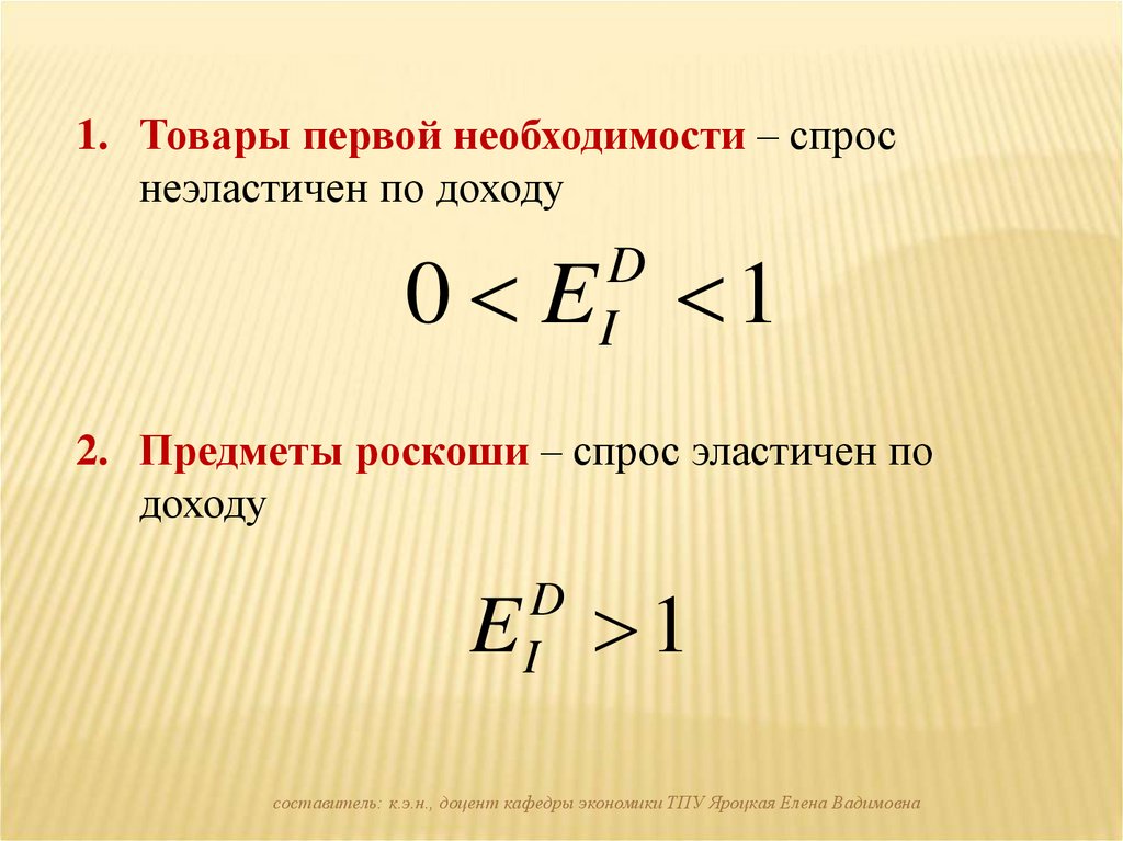 1. Товары первой необходимости – спроснеэластичен по доходу