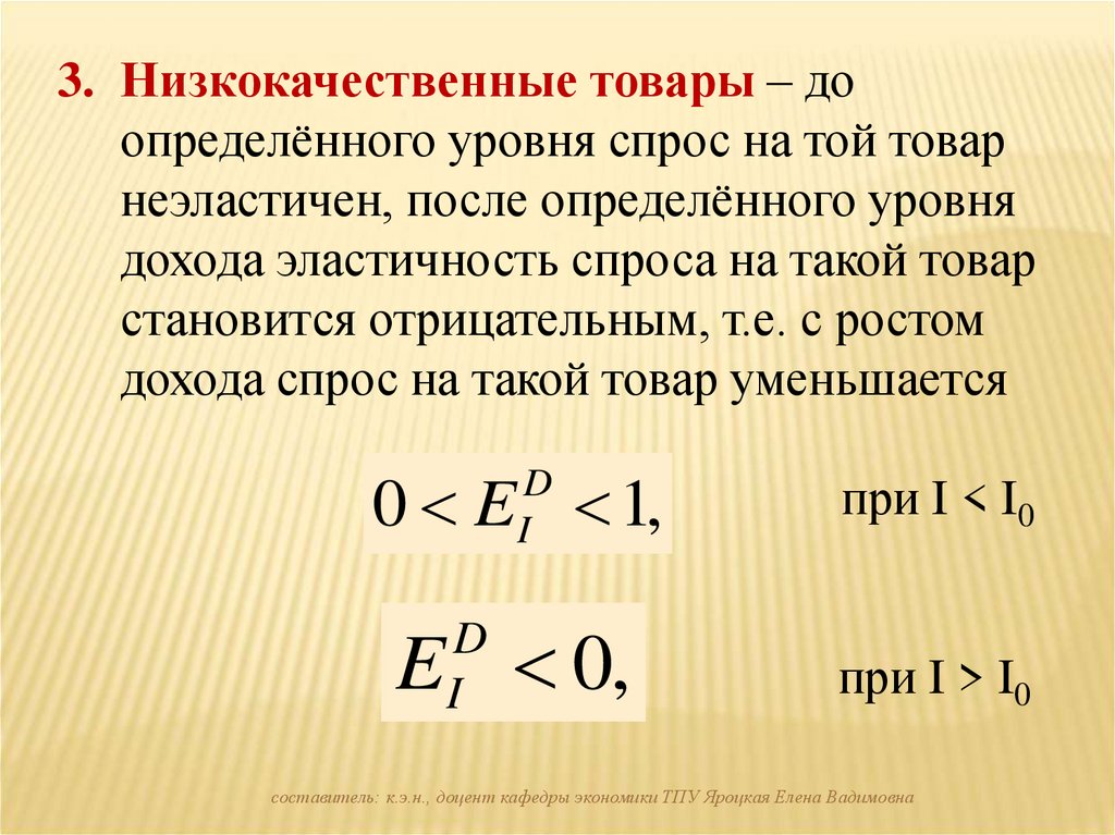 3. Низкокачественные товары – доопределённого уровня спрос на той товар