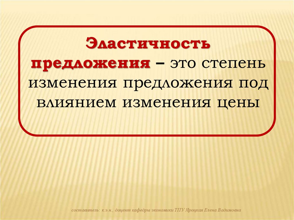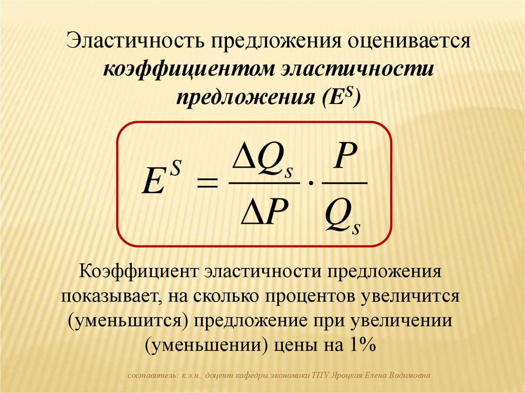 Эластичность предложения оцениваетсякоэффициентом эластичности