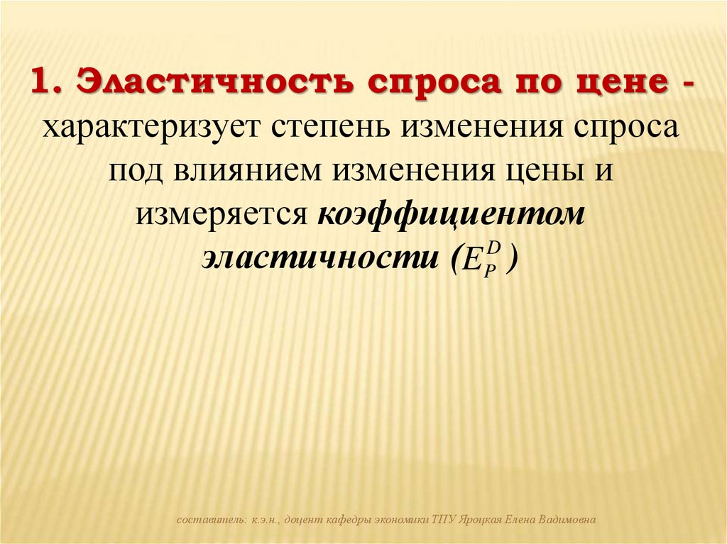 1. Эластичность спроса по цене характеризует степень изменения спросапод влиянием изменения цены и