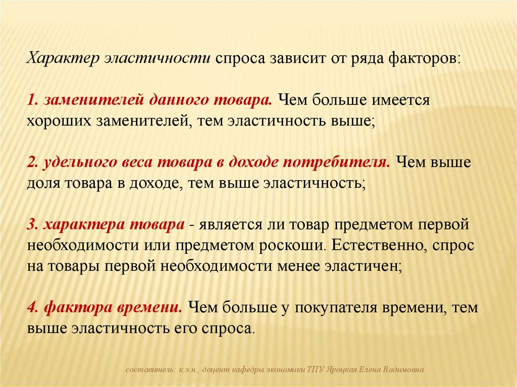 Характер эластичности спроса зависит от ряда факторов:1. заменителей данного товара. Чем больше имеется