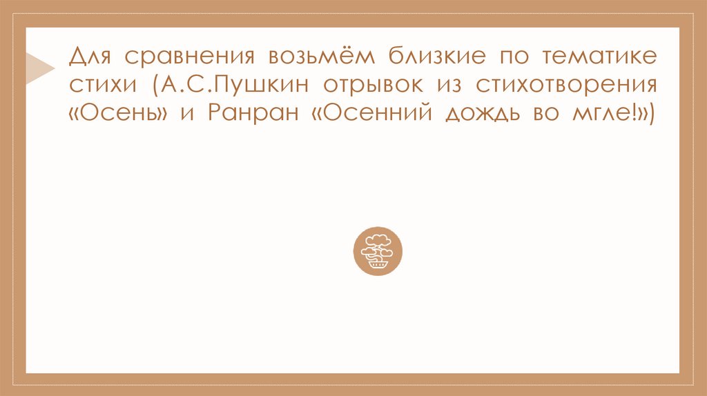 Для сравнения возьмём близкие по тематикестихи (А.С.Пушкин отрывок из стихотворения