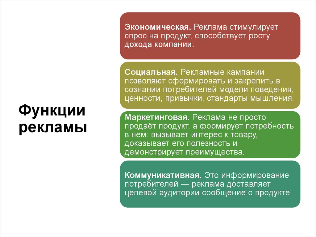 Экономическая. Реклама стимулируетспрос на продукт, способствует росту