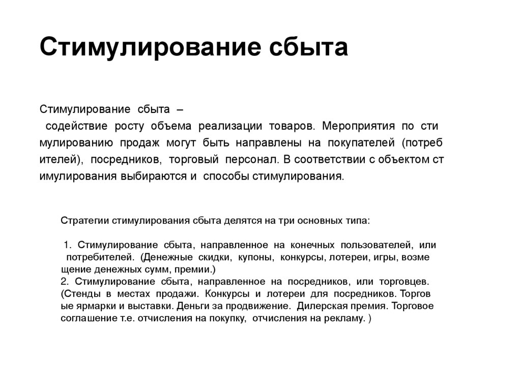 1. Стимулирование сбыта, направленное на конечных пользователей, или